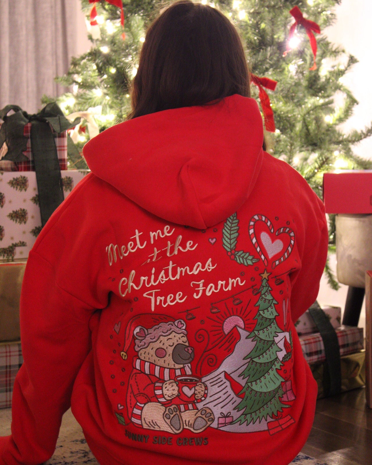 Introducing our festive “Meet Me at the Christmas Tree Farm” Hoodie — where warmth meets whimsy. Crafted from ultra-soft, premium materials, this hoodie brings comfort, charm, and a touch of nostalgia to your winter wardrobe. Featuring playful holiday artwork and cheerful colors, it’s the perfect piece for sipping cocoa, picking the perfect tree, or enjoying cozy nights by the fire. Finished with our signature Sunny Side Crews flair, this limited-edition design makes every day feel like a magical holiday memory.