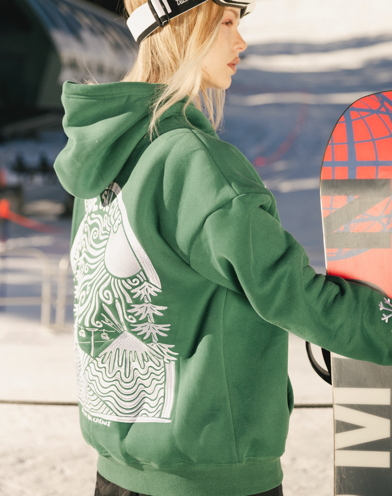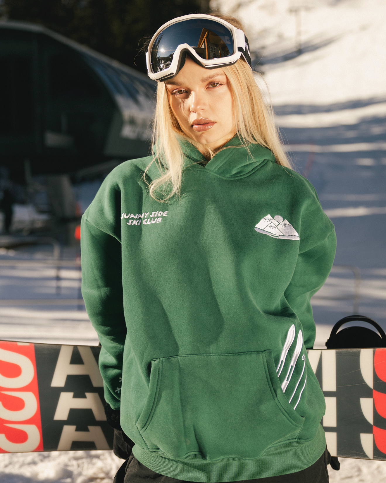 “Sunny Side Ski Club” Oversized “Evergreen” Embroidered Hoodie