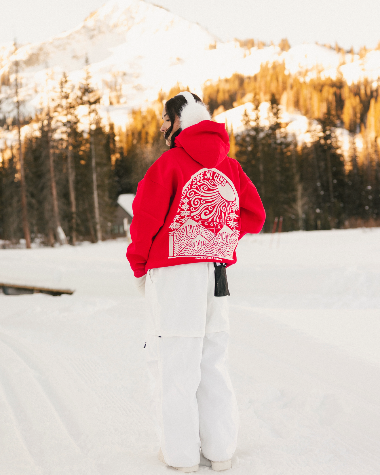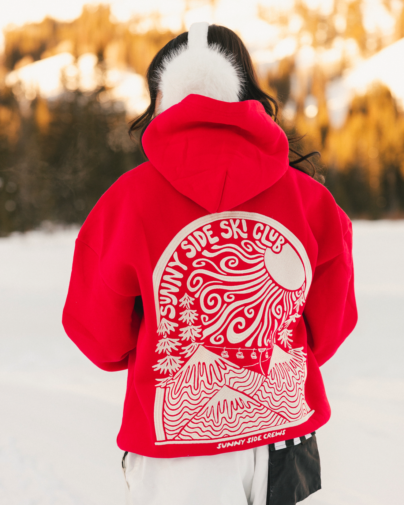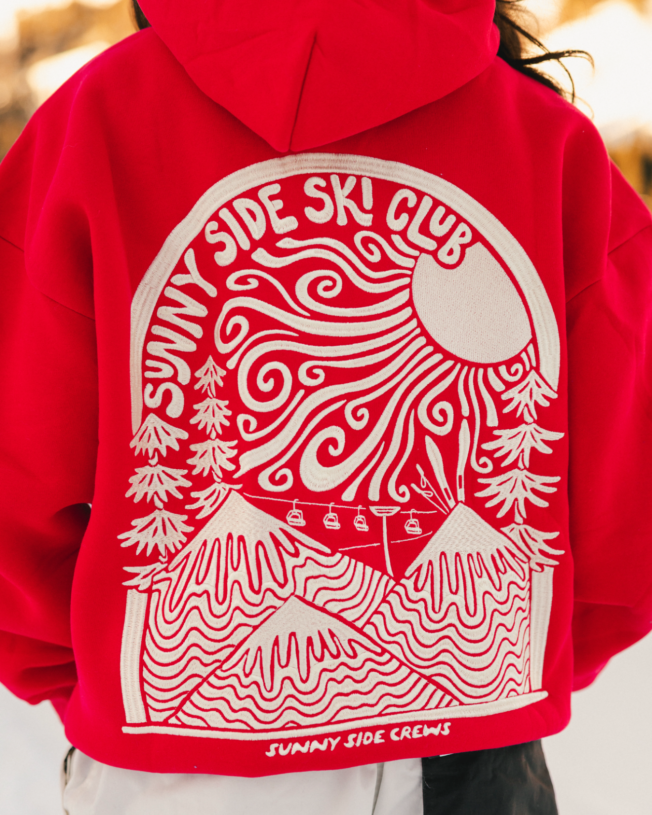 “Sunny Side Ski Club” Oversized “Scarlet” Embroidered Hoodie