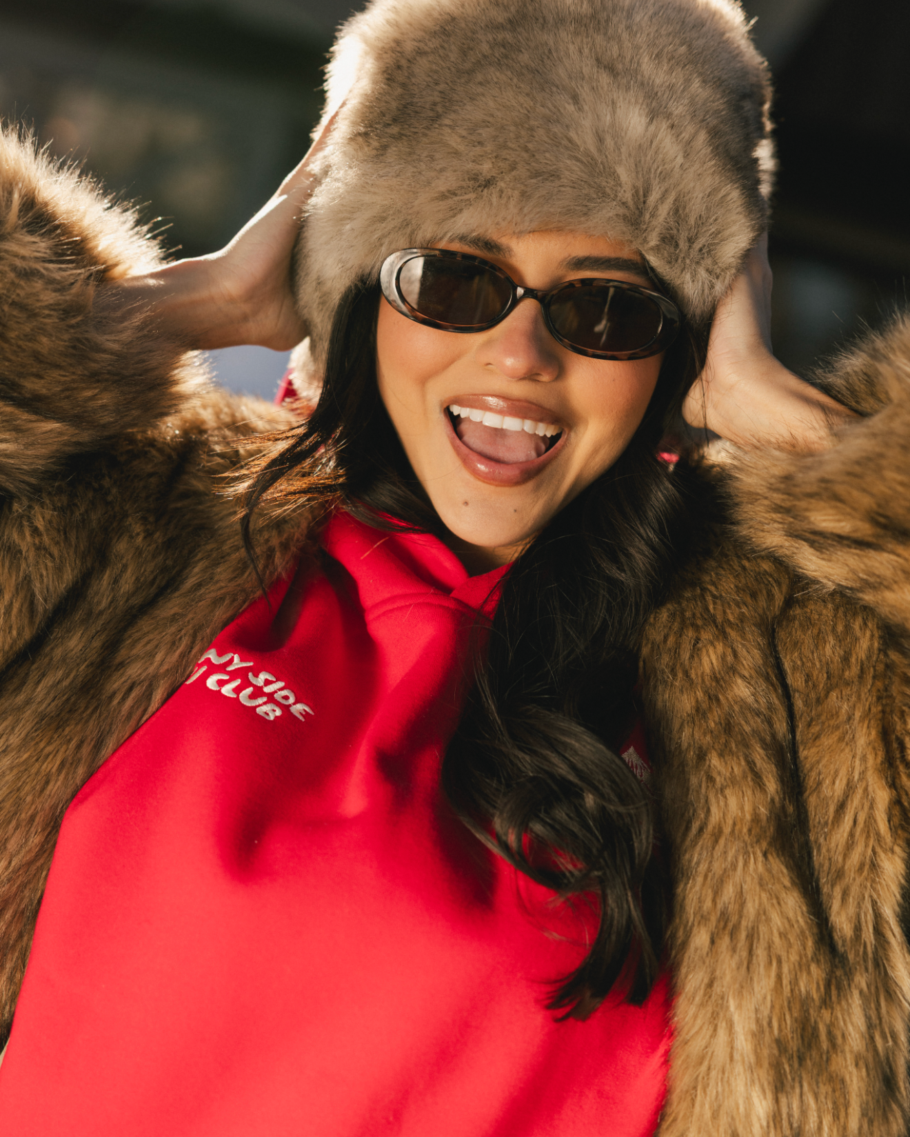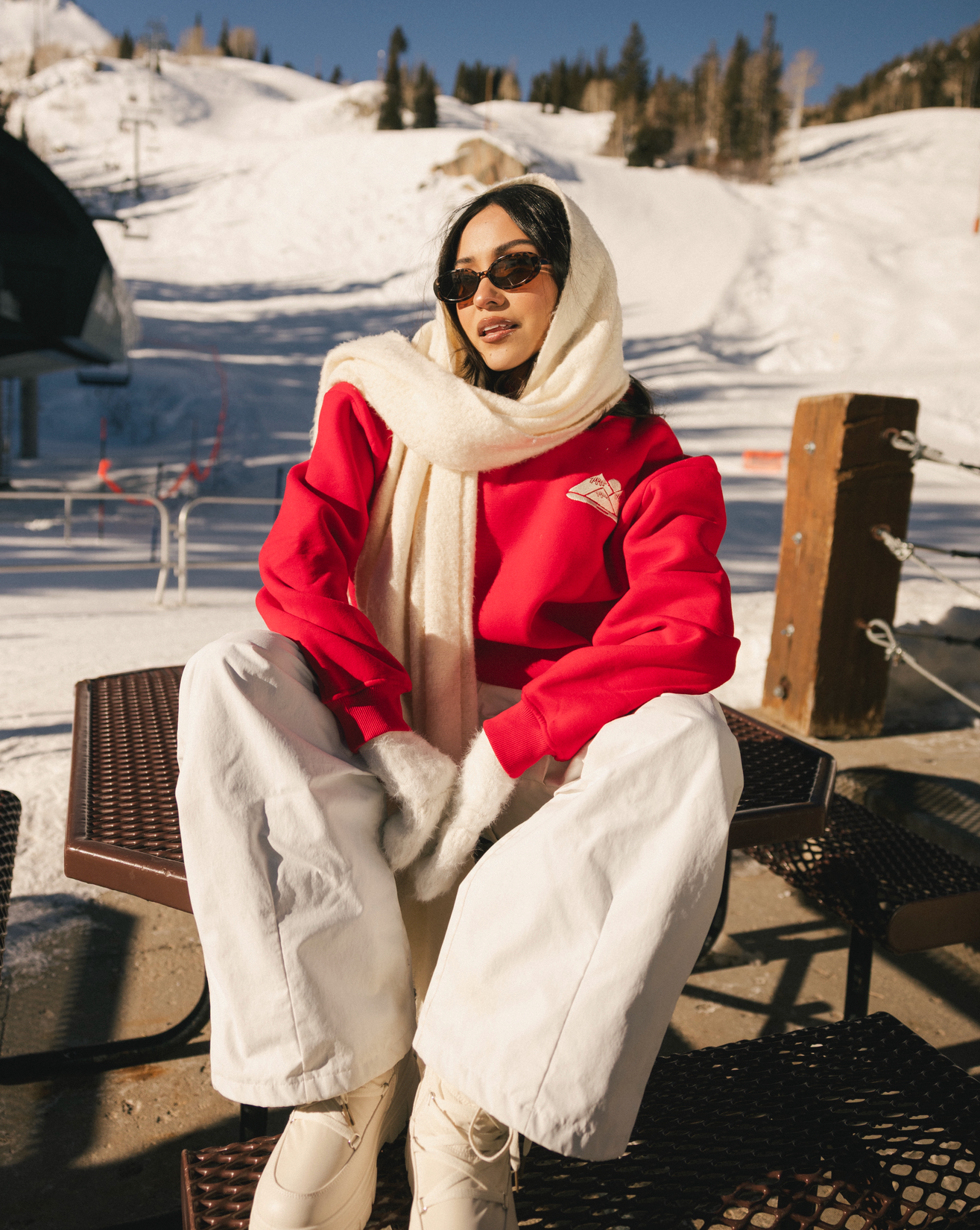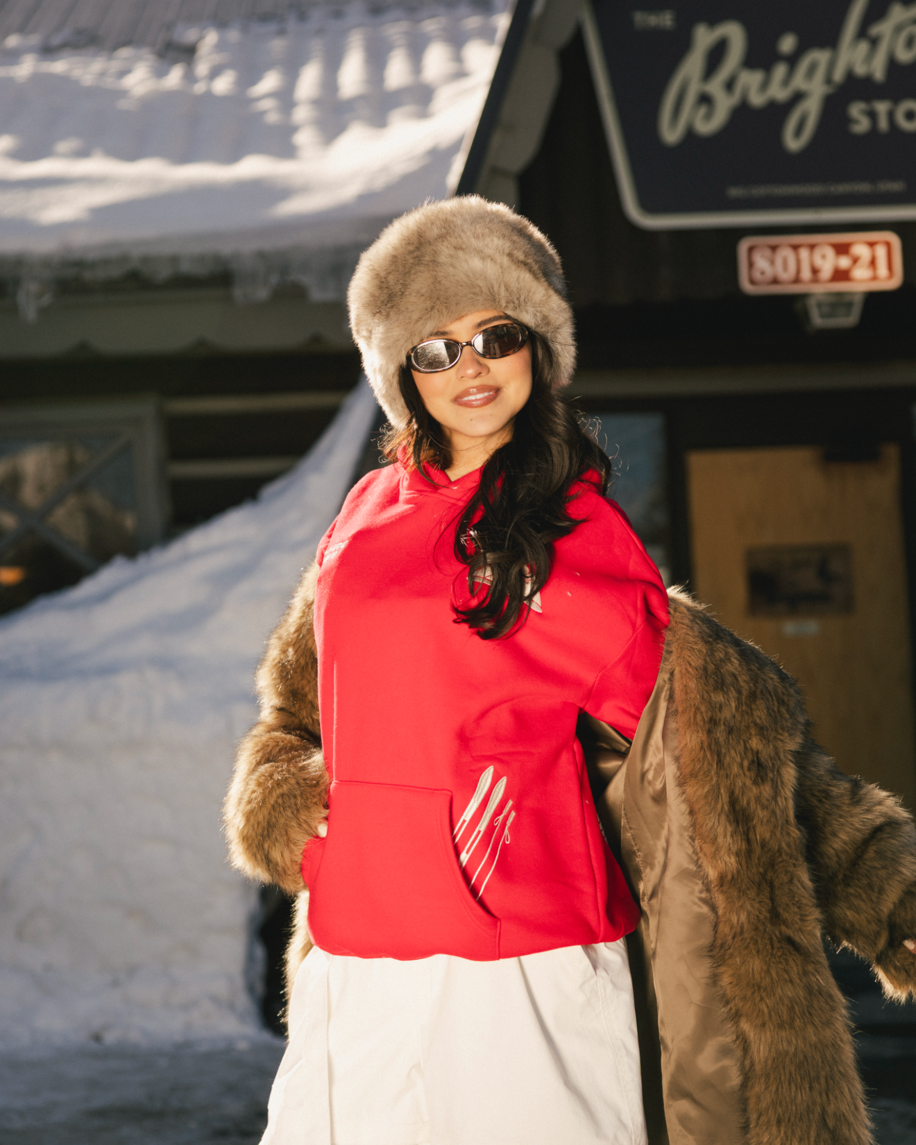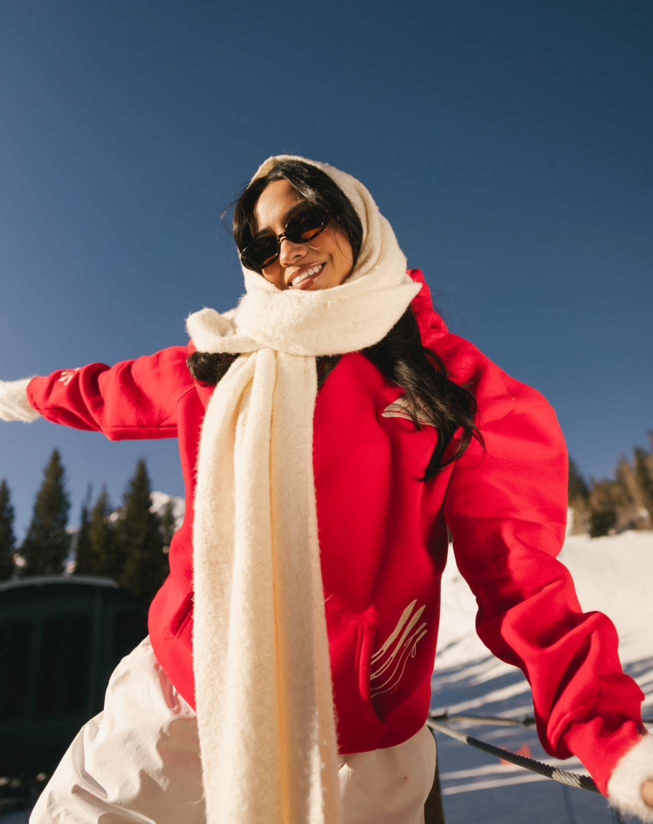 “Sunny Side Ski Club” Oversized “Scarlet” Embroidered Hoodie