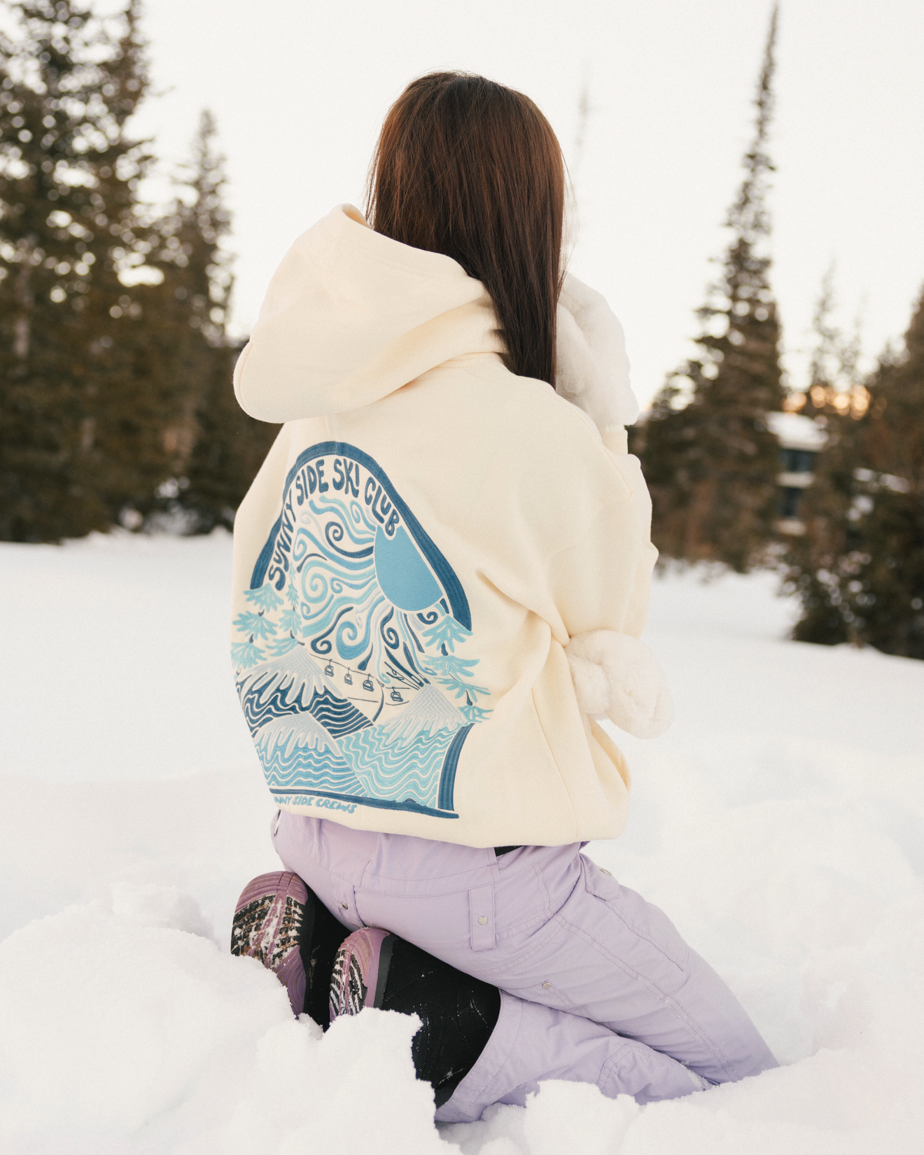 “Sunny Side Ski Club” Oversized “SnowDrift” Embroidered Hoodie